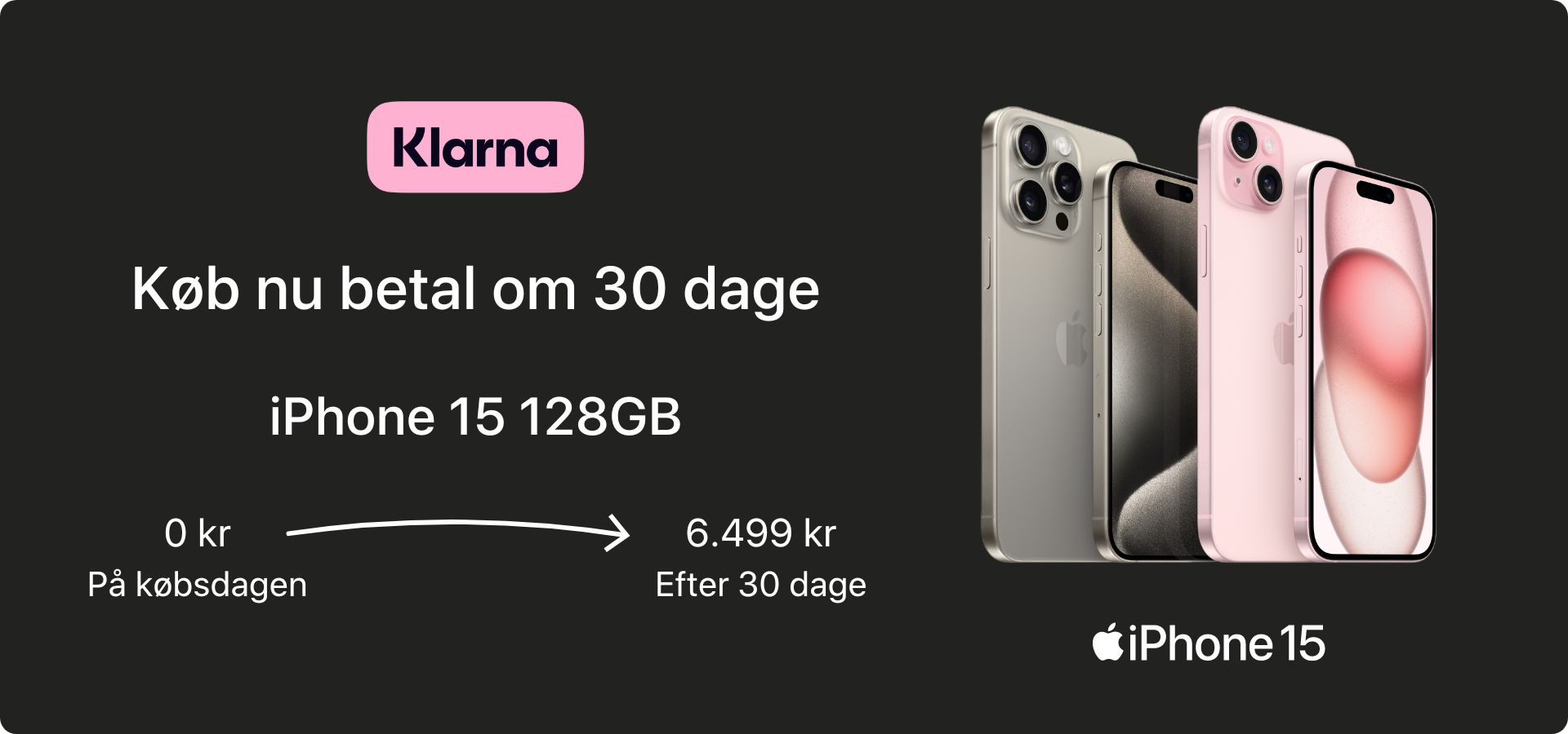 Tag dine varer hjem i dag, beslut dig i morgen. Udnyt op til 30 dages betalingsfrihed online, sikret af Klarna.